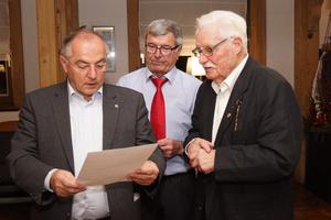 Leider konnte zur Ehrung der Jubilare nur Peter Bopp anwesend sein. Dieser ist vor 40 Jahren, ebenso wie Arnhild Basedau, in die SPD eingetreten. Fritz Gutmann und Josip Juratovic ehrten Peter Bopp – der von 1994 bis 2004 für die SPD im Gemeinderat war – mit einer Urkunde und einer Nadel, dazu gab´s noch ein Weinpräsent. Nicht kommen konnten leider Josef Illchmann und Prof. Dr. Carl Böhret. Carl Böhret wurde für 60 Jahre Mitgliedschaft beim Willi-Brandt-Abend geehrt, Josef Illchmann ist schon sagenhaft 65 Jahre Mitglied der SPD. Für diese große Treue ehrte Fritz Gutmann ihn zu Hause.